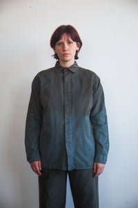 1-Pocket LS Frame Shirt in Nearly Black/Midnight Blue Ombre 5oz Organic Cotton Broken Sateen