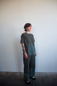 Our classic tee is our first foray into “basics.” Cut from a subtly variegated 5.75 organic cotton jersey, the t-shirt is constructed without side seams using a circular knitting machine and features a standard fit compared with our wider-cut knitwear.